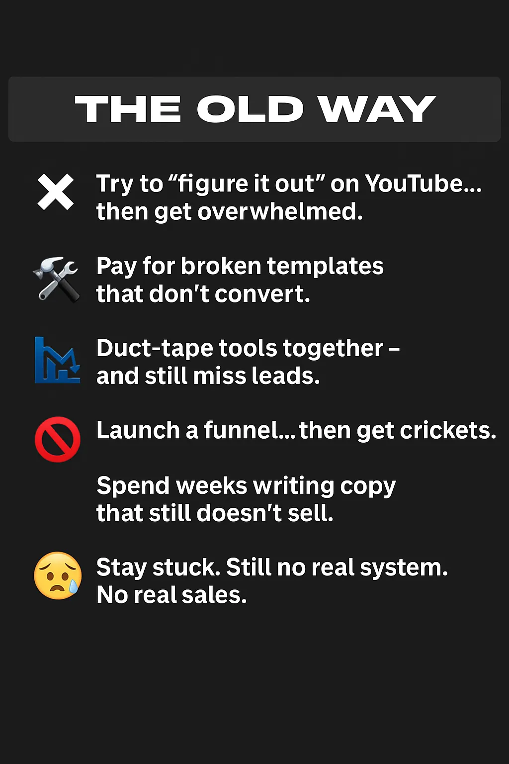You don’t need to guess, build from scratch, or spend weeks piecing together some Frankenstein funnel with duct-taped tools and scattered YouTube tutorials.